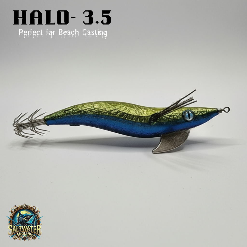 The Metallic Series Squid Jig Pack showcases the very best of Saltwater Angling’s craftsmanship — four unique metallic jigs, each designed to reflect light naturally and trigger squid strikes in clear or bright conditions.